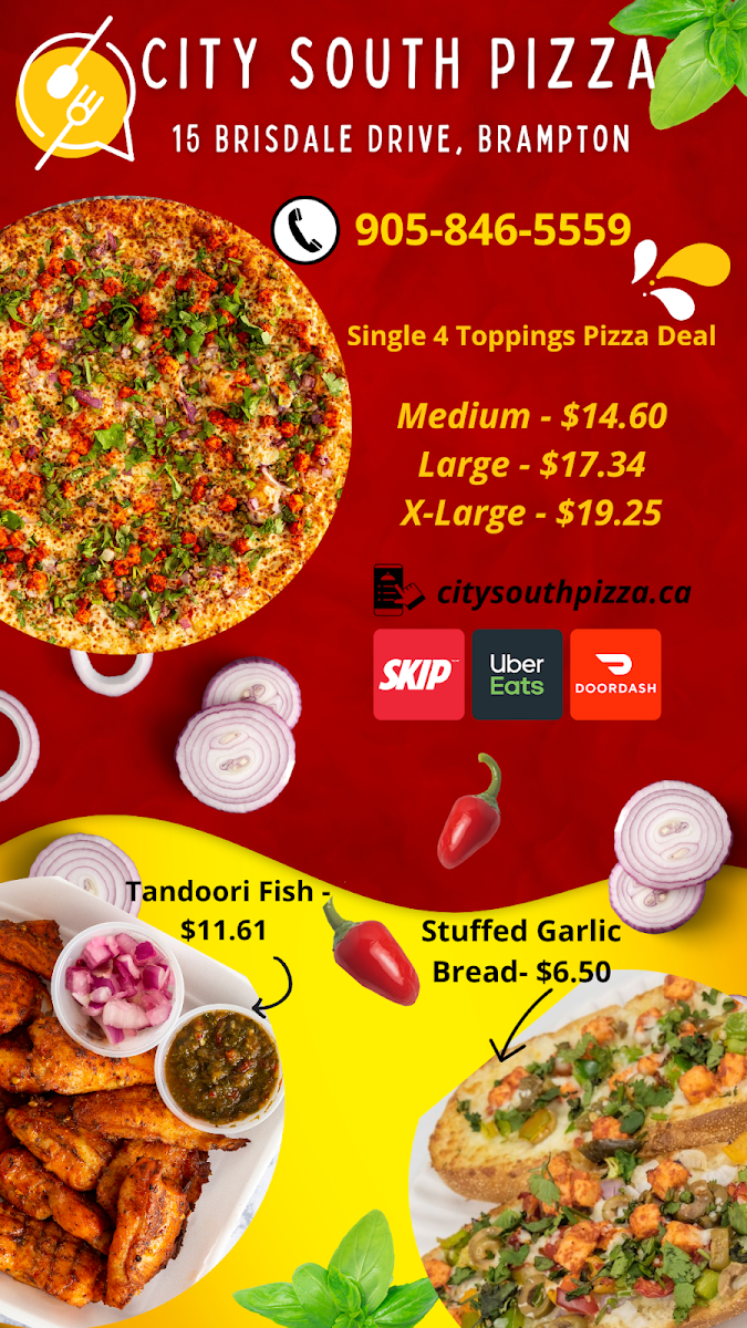 Located in Brampton, City South Pizza blends Indian flavors with classic pizza in a unique culinary experience. Their standout dish, the Tandoori Paneer Pizza, features smoky tandoori paneer, perfectly spiced, paired with a crisp crust and creamy cheese. It’s a delightful fusion that offers a taste adventure worth savoring.